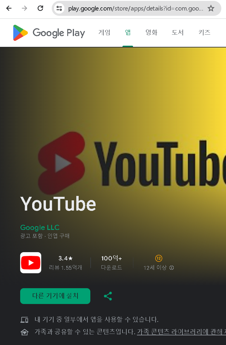 여기서 id 뒷부분 com.google.android.youtube 가 앱의 패키지 이름입니다.