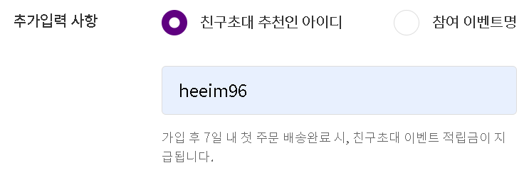 (가입 완료 후에는 추천인 입력이 불가하니, 꼭 가입하실때 넣으셔서 적립금 받으세요~)