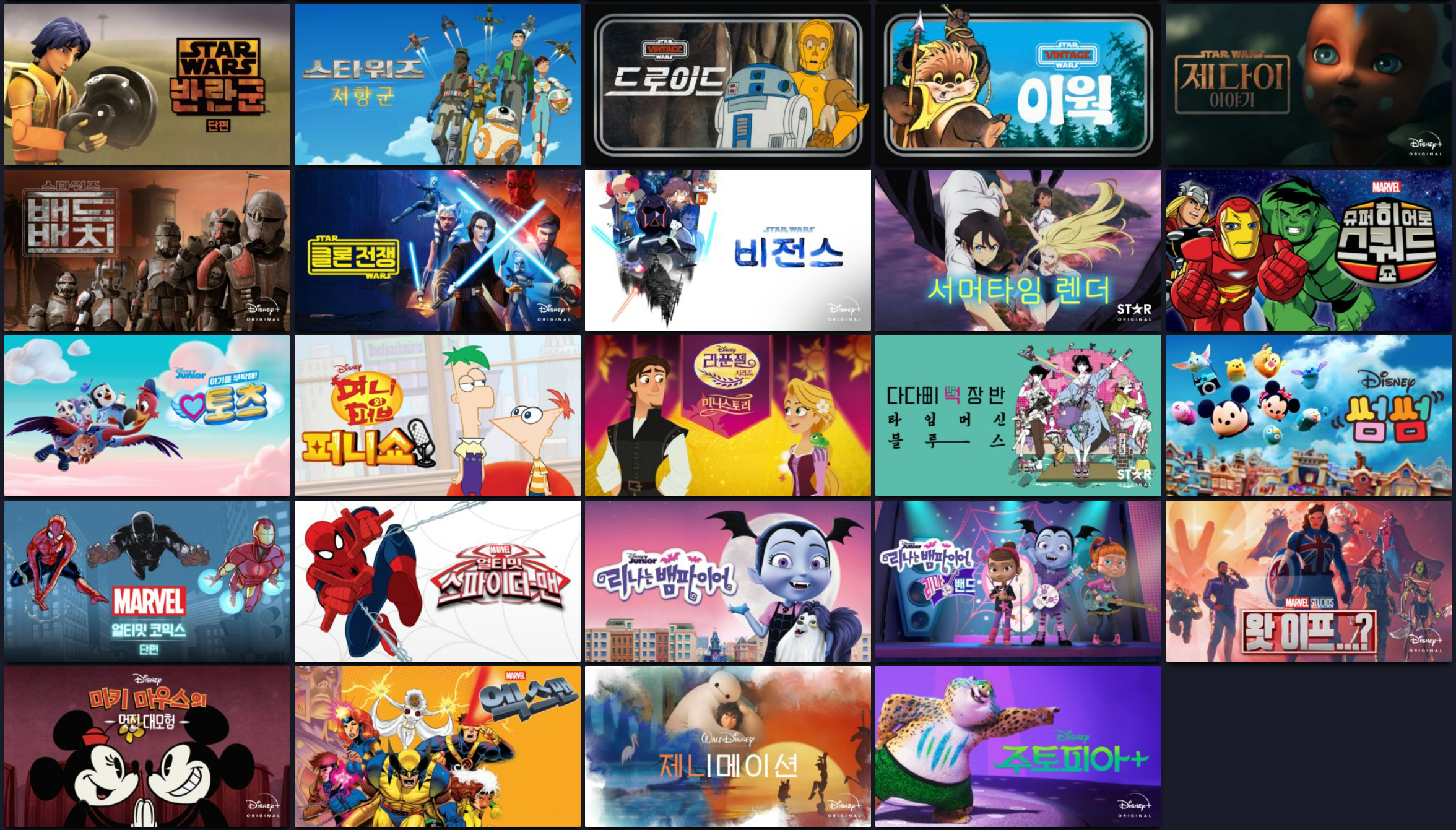 디즈니 플러스 애니메이션 부문 2023년 1월 1일자 기준 업데이트를 완료합니다.