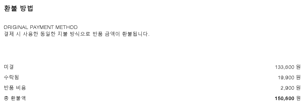 자라 반품 페이지의 환불 정보가 정확하지 않습니다.