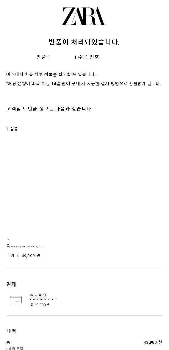 1. 자라 반품 처리 메일 확인
