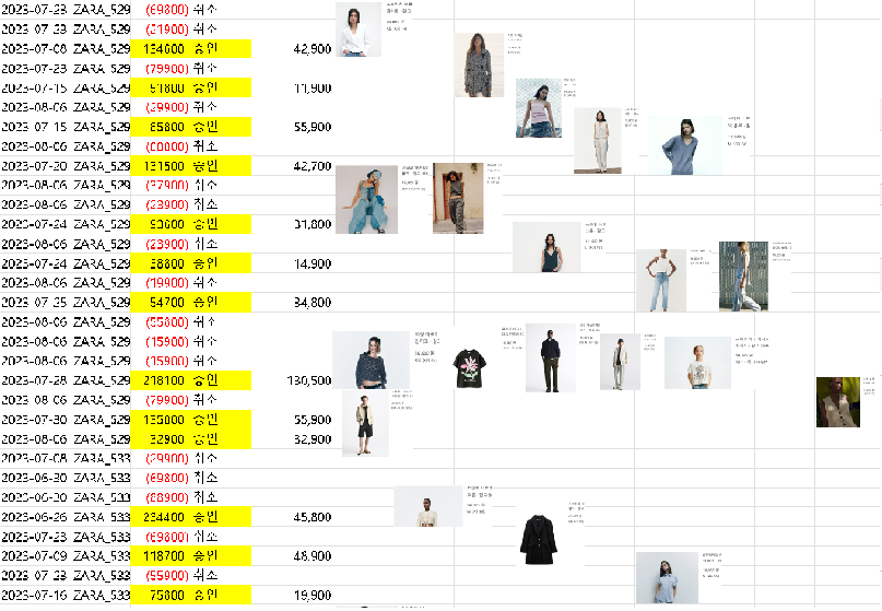 (저는 각 주문번호별로 최종적으로 구매결정한 제품들 이미지도 옆에 붙여 보았습니다.