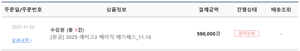* 환급형 상품을 구매한 2025 메가패스 수강생에게 2025 수능 버전 정시 합격예측 서비스 20회 이용권이 무료로 지급됩니다. (수능 전일 오후 지급 예정)