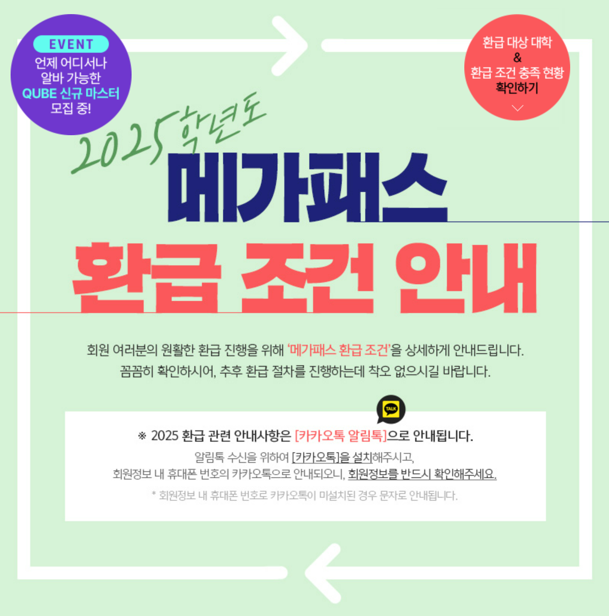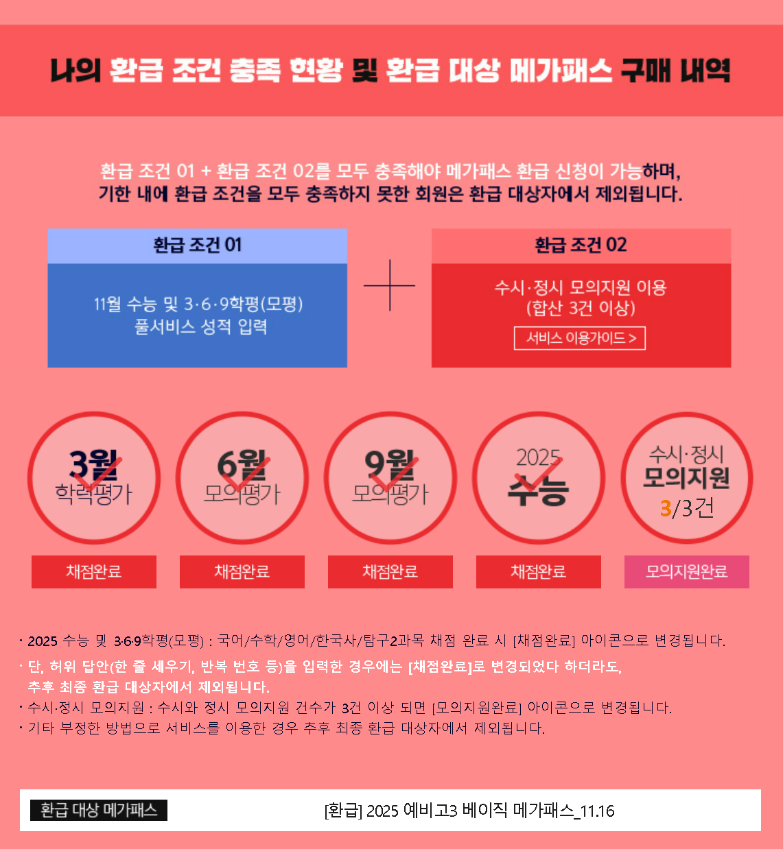- 다음 내용은 2023년 11월 1일(수)부터 환급형 2025 메가패스 구매한 모든 회원에게 공통으로 일괄 적용됩니다.