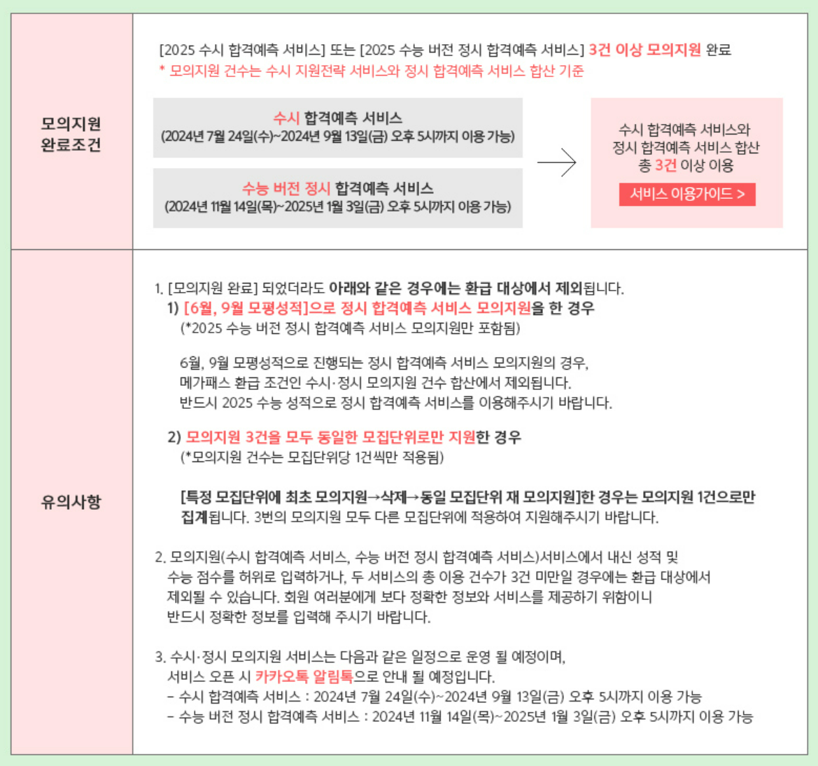 [2025 메가패스 환급 조건 ② - 수시·정시 모의지원 이용]