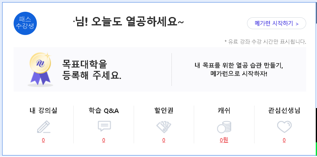- 메가패스로 수강하는 강좌의 개별 이벤트 혜택은 제공되지 않습니다.