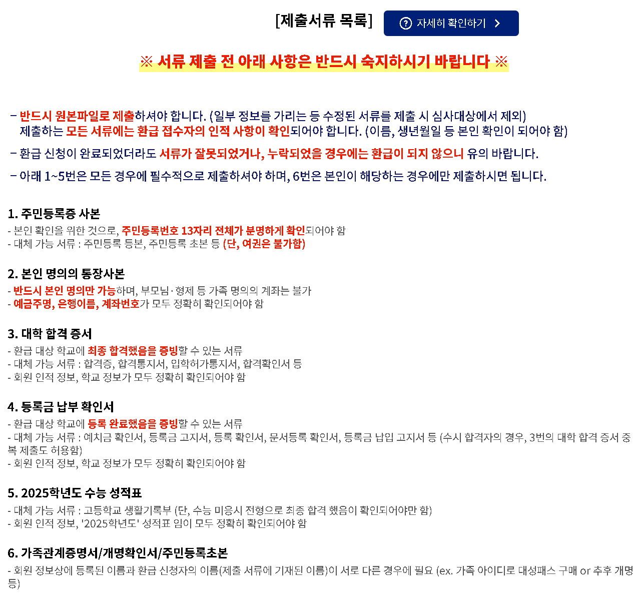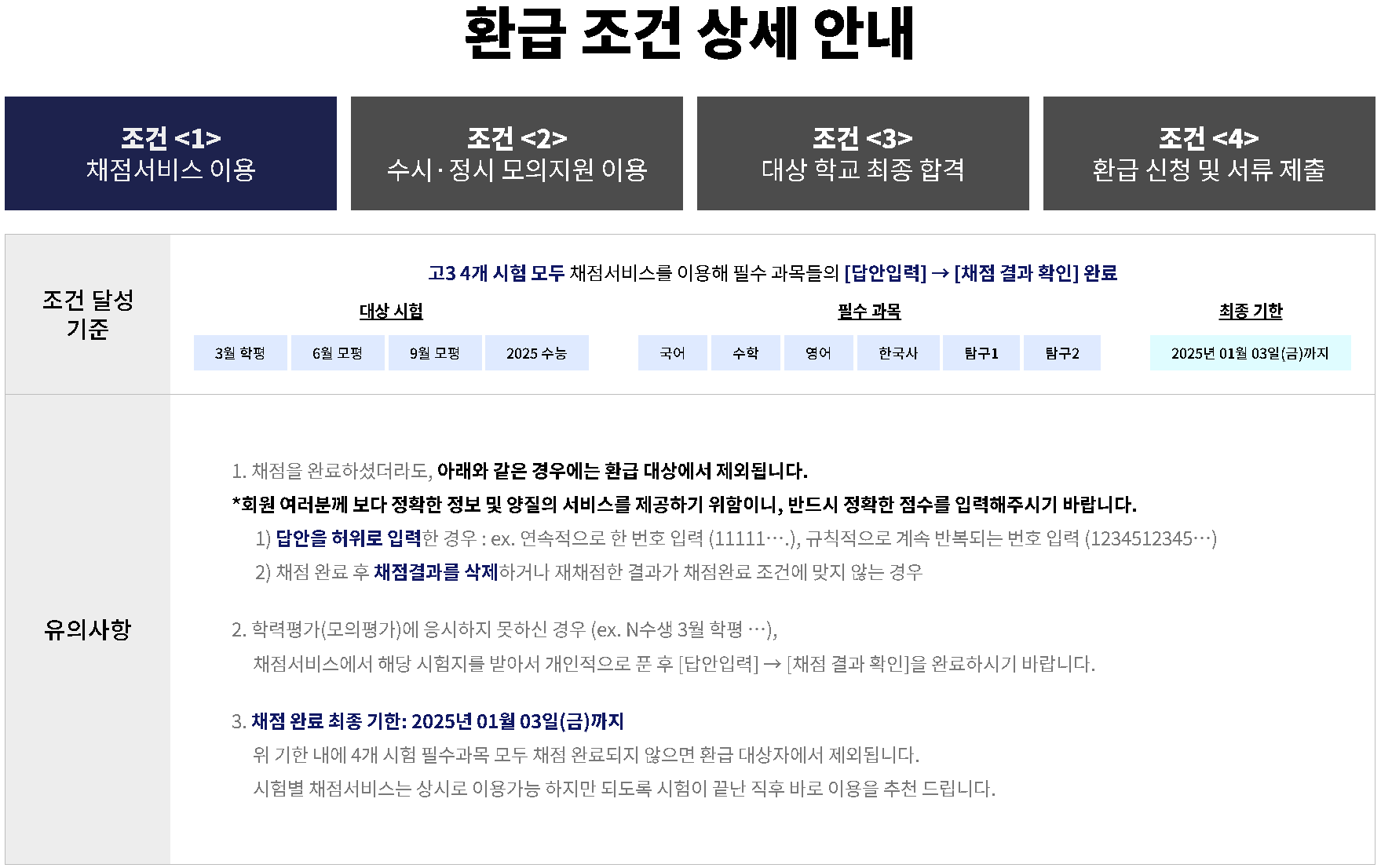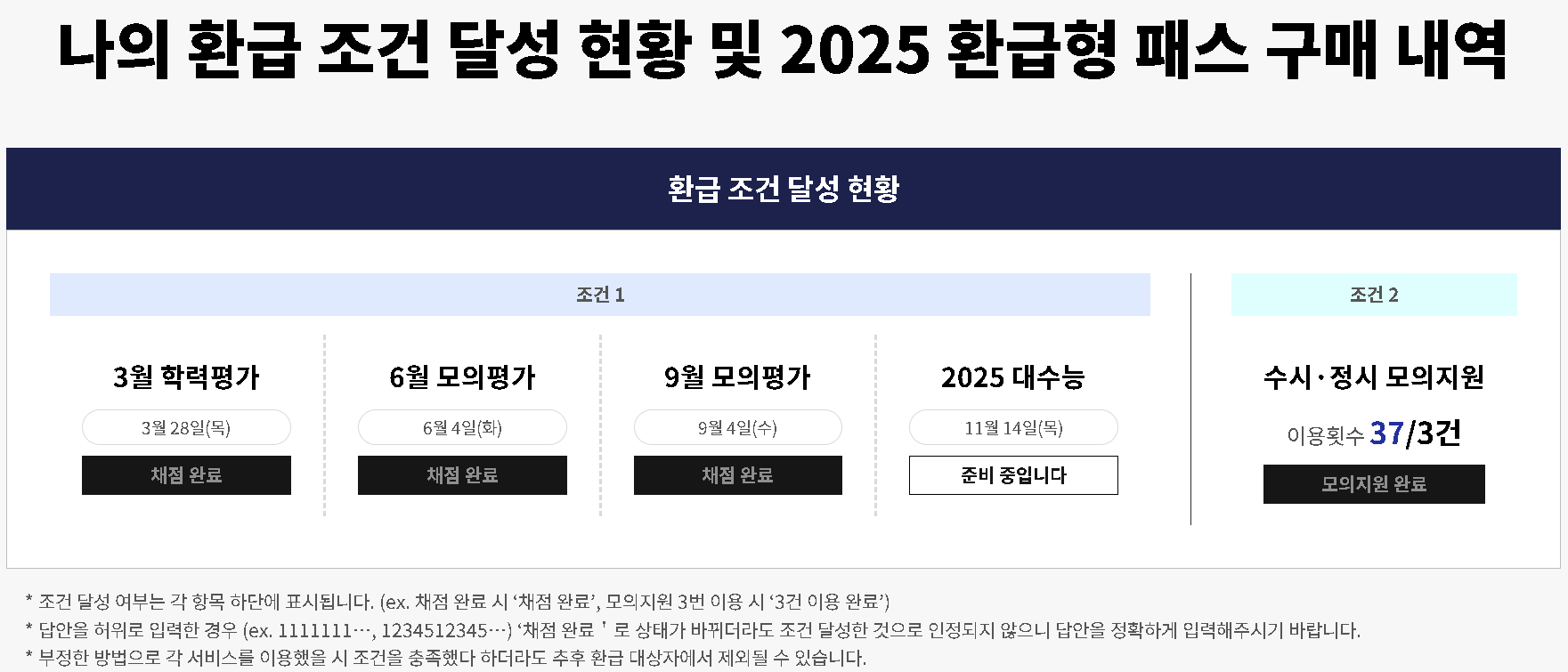 2025 환급형 상품을 구매하신 모든 회원분들을 위해 환급 관련 정보를 안내 드립니다. 아래 내용은 반드시 숙지하시어 추후 환급 신청에 착오 없으시기 바랍니다. 환급관련 공통 유의사항 2025 환