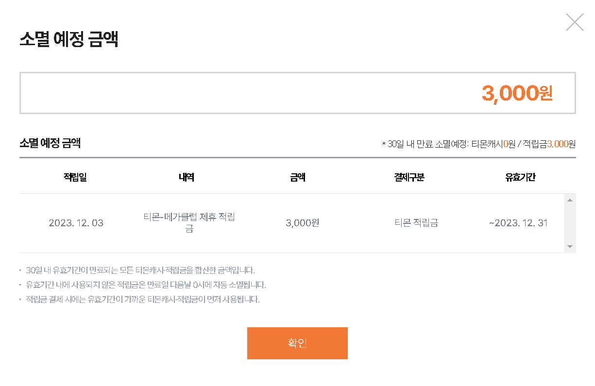 11. 당월안에 사용하지 않으면 소멸됩니다.