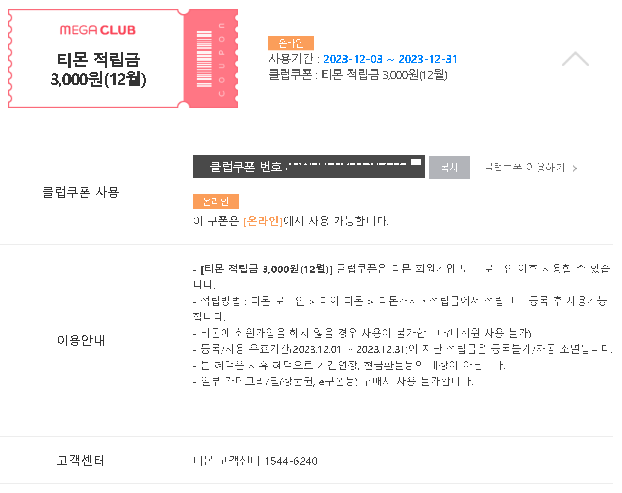 7. 클럽쿠폰 번호를 복사합니다.
