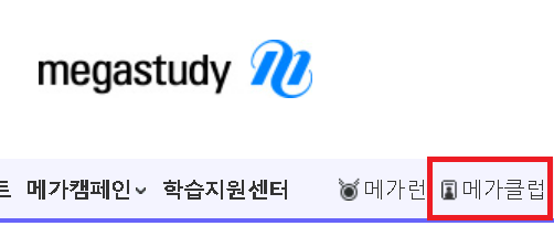 1. 메가스터디 메인 화면에 '메가클럽'으로 들어가주세요.
