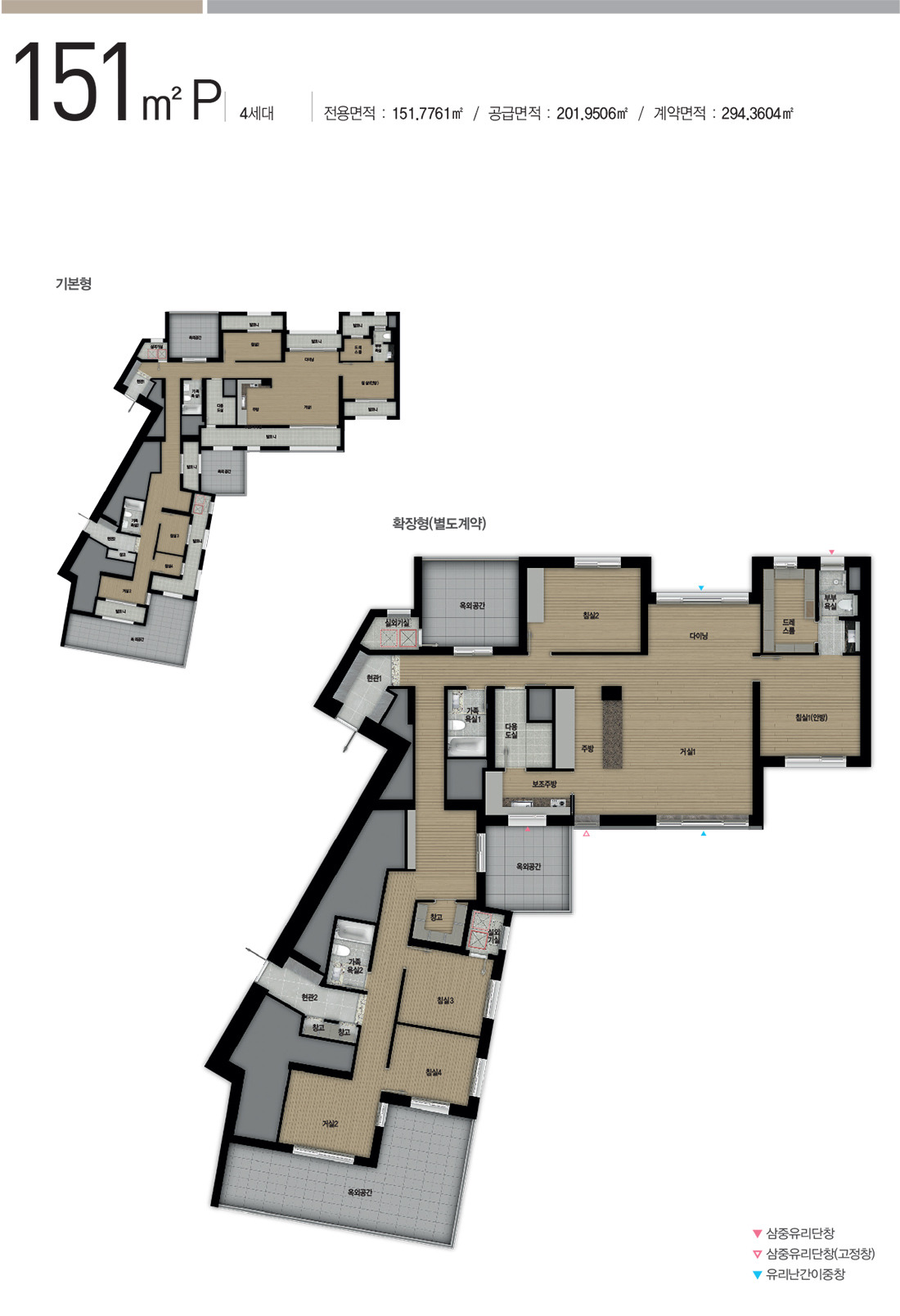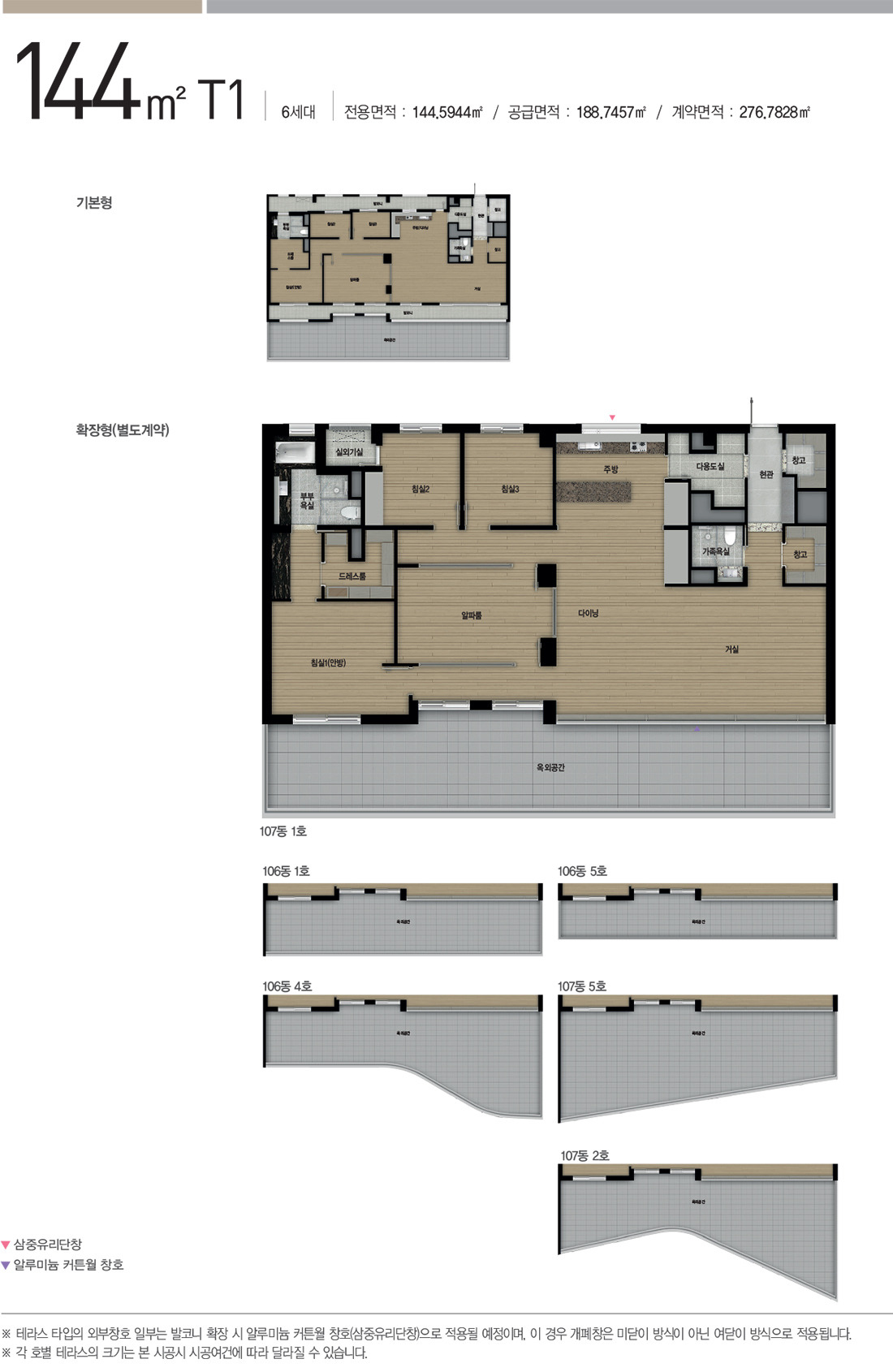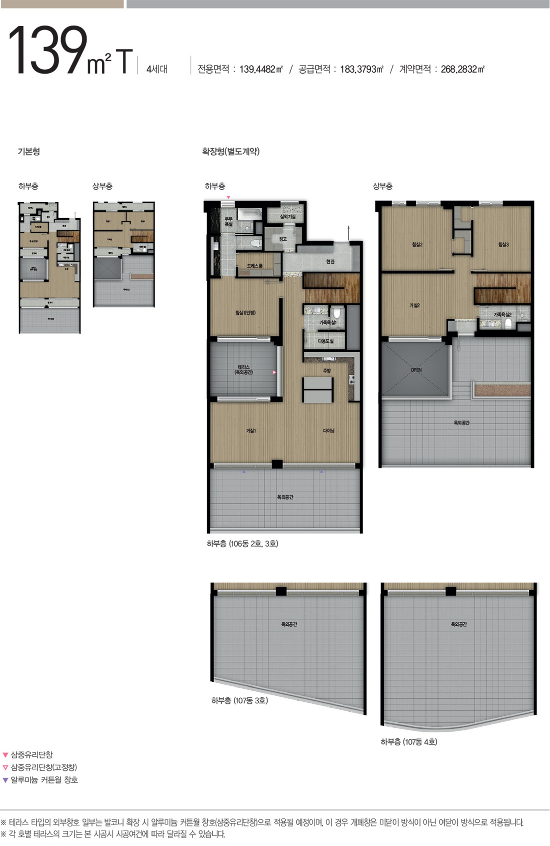 아래는 타입별 세대수가 많지 않은 테라스 세대와 펜트하우스 세대 타입들 입니다.