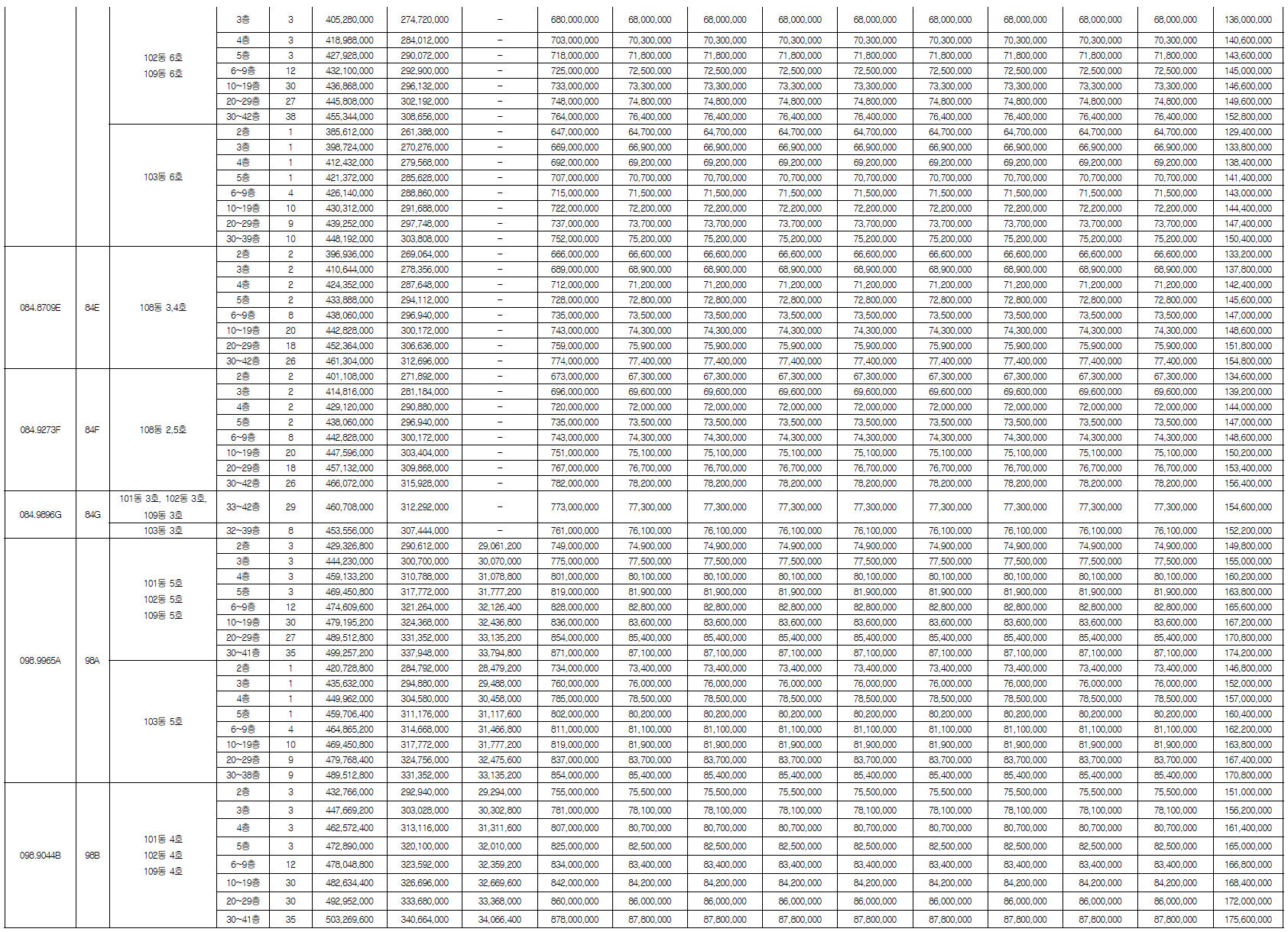 84E는 108동 전면동의 제일 앞쪽에 위치하는 타입으로