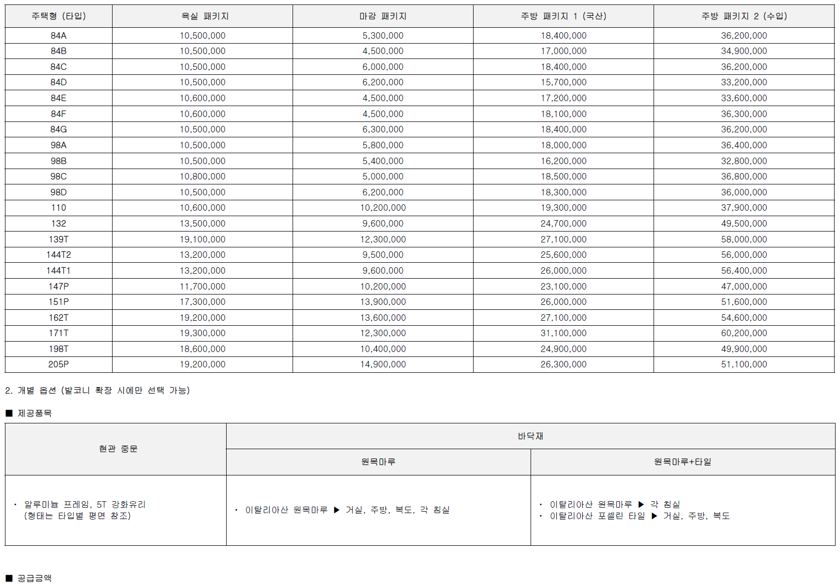 2호라인은 모두 남동, 남서향으로 향이 좋은 타입이고,