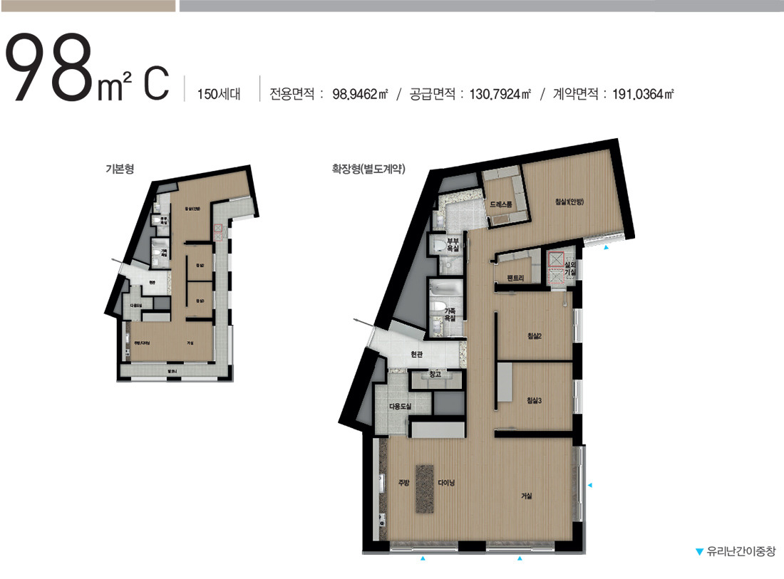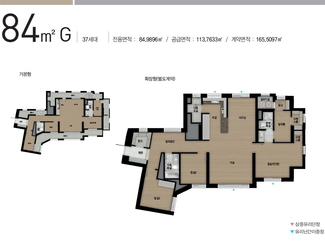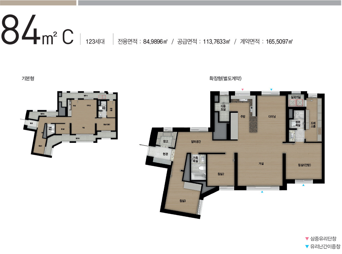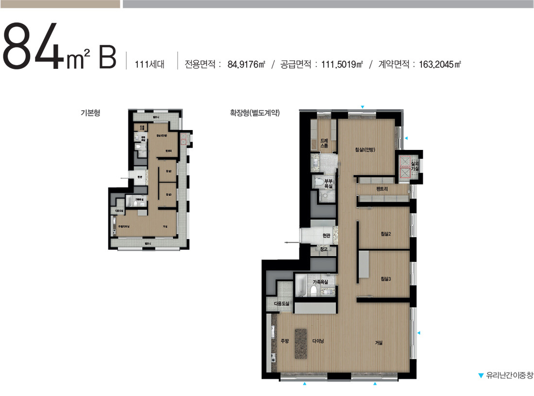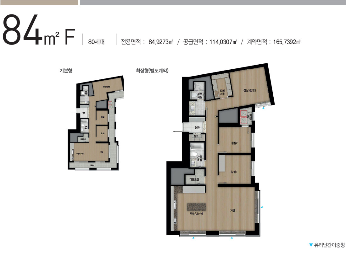 84C에 비해 침실1이 확장된 타입입니다.