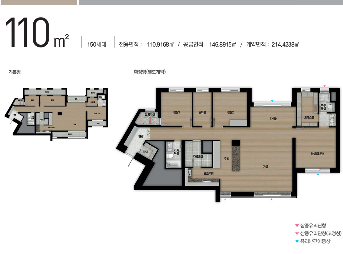 이 정도 평형부터는 욕실이 3개씩 나와주면 좋겠어요.