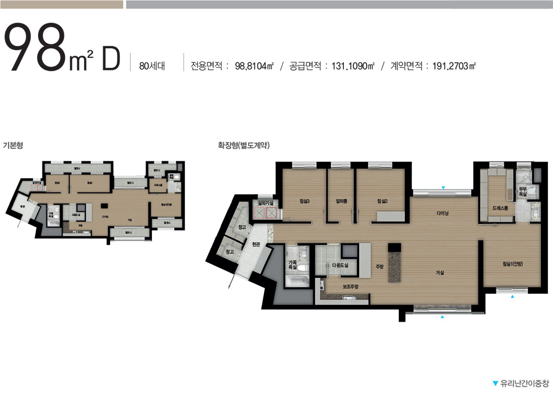 98D와 마찬가지로 보조주방이 따로 있는 형태라 활용하기 좋을 것 같습니다.