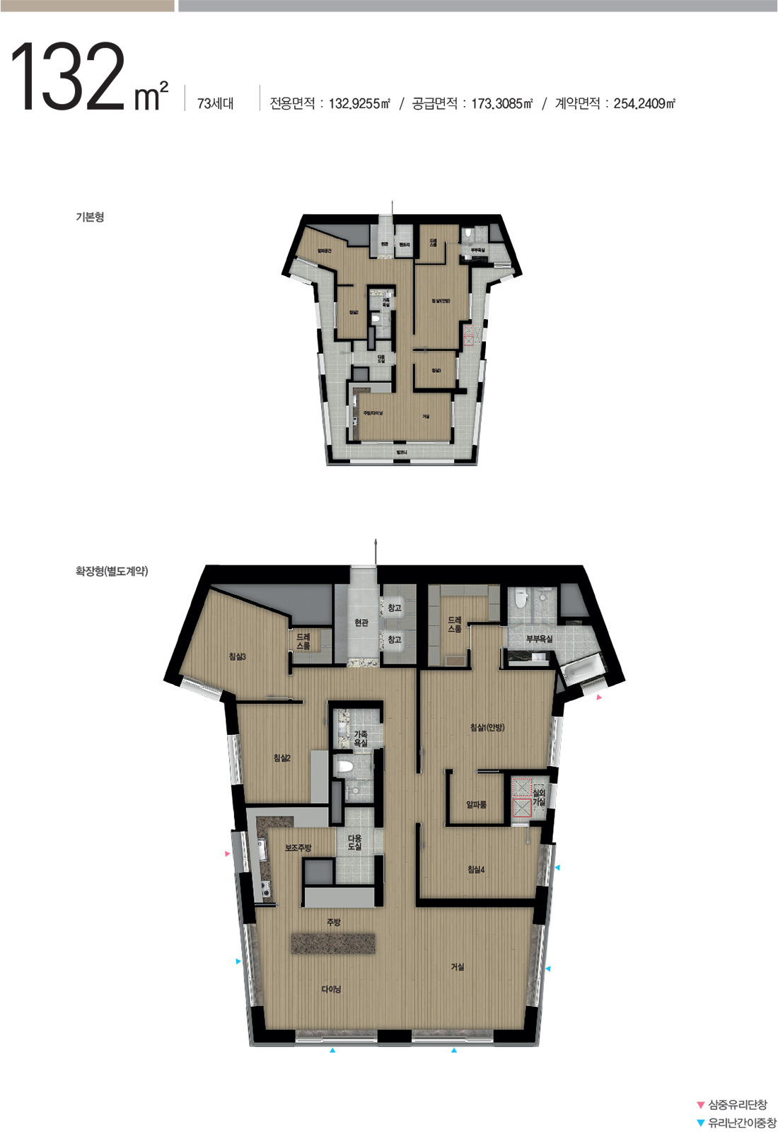 (다만 1층을 기준으로 하고, 상층으로 올라가면 타입이 바뀌는 부분은