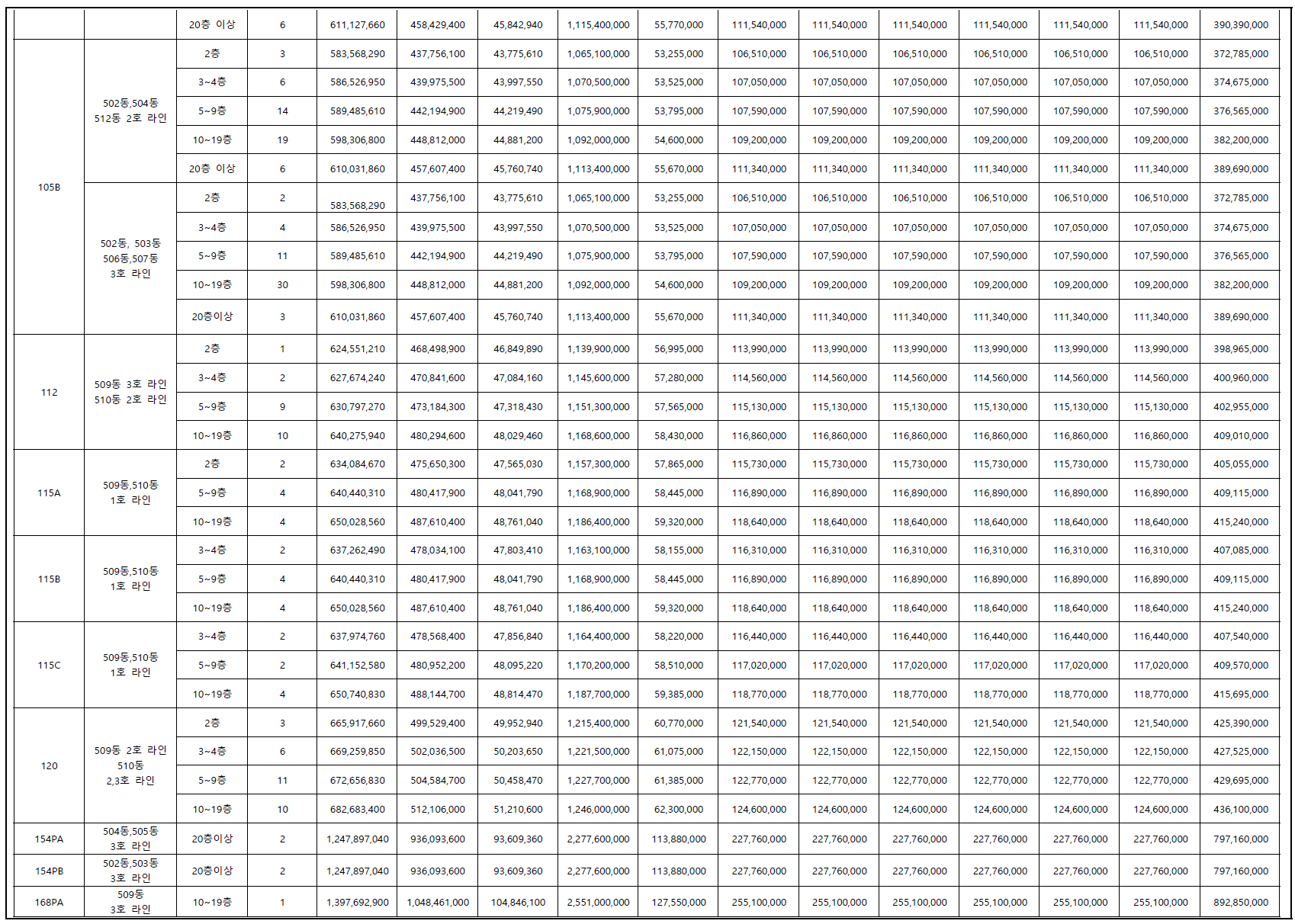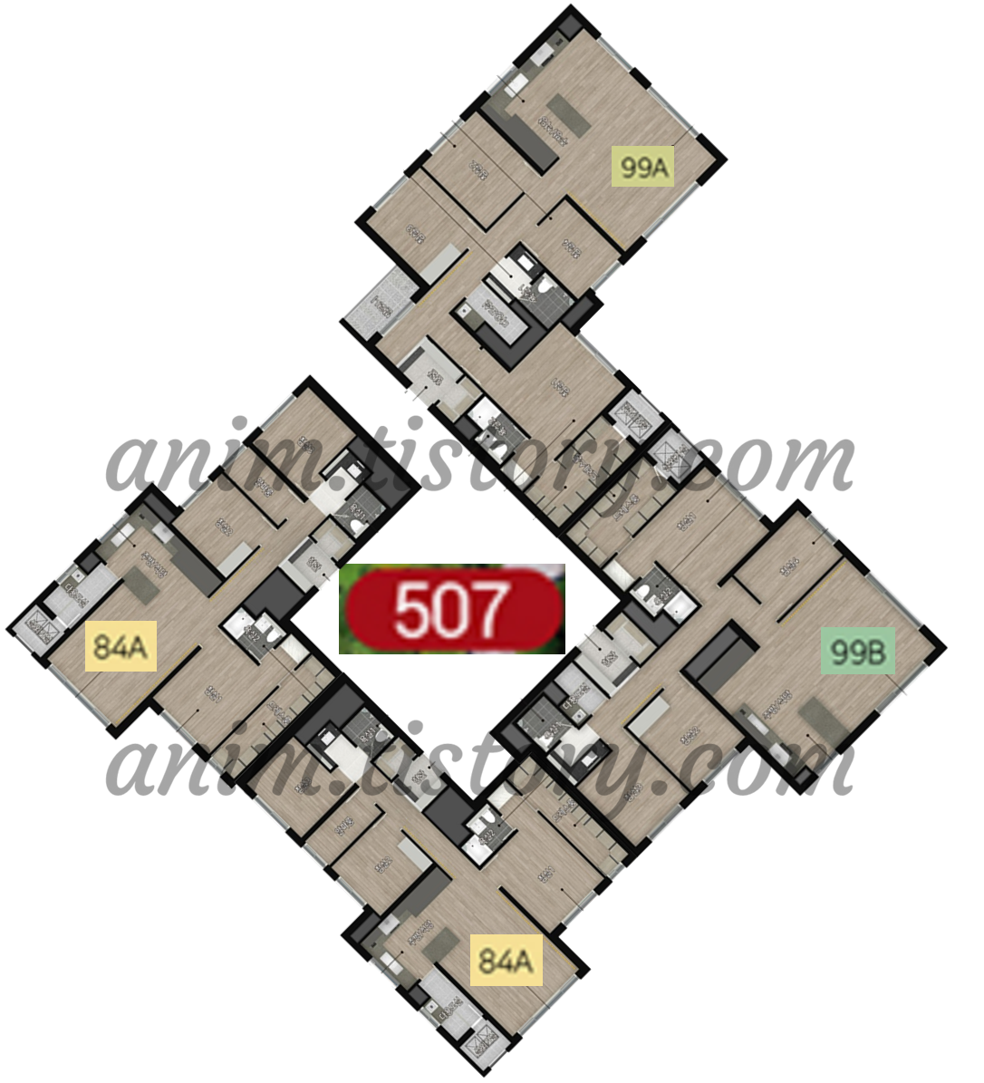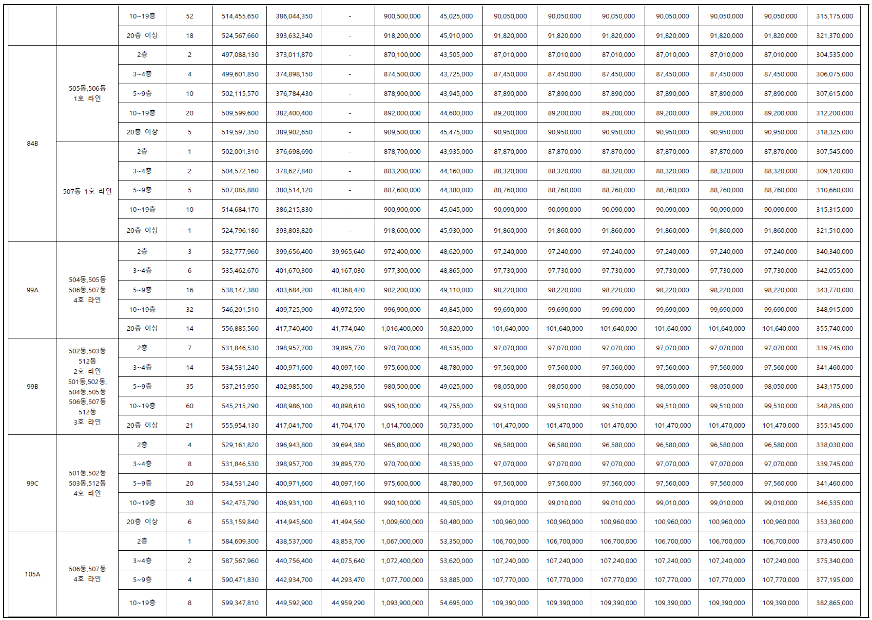 2-2. 남북방향 동별 타입 배치도