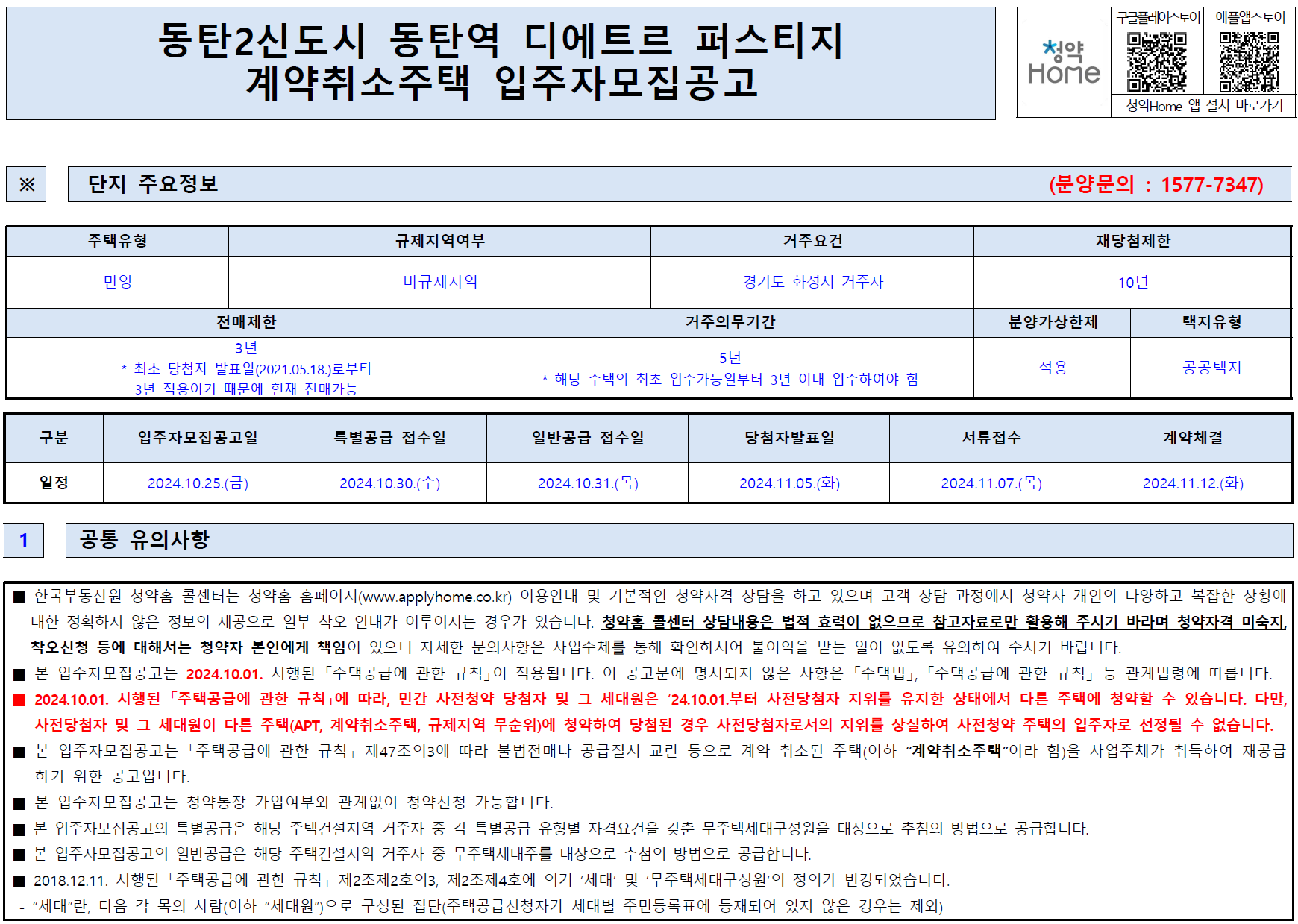 2024년 10월 25일 동탄 디에트르 무순위 줍줍 안내입니다.