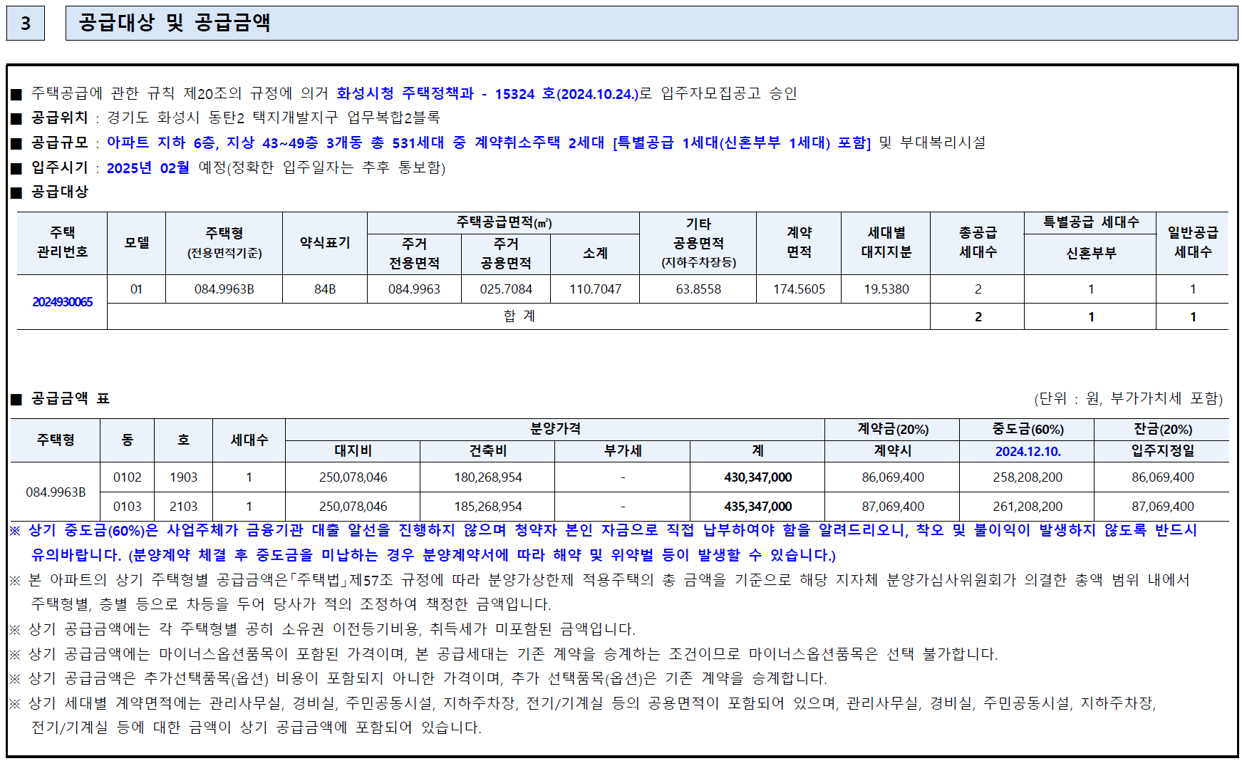 84B타입 신혼부부 특공 1세대, 일반 1세대가 나왔네요.