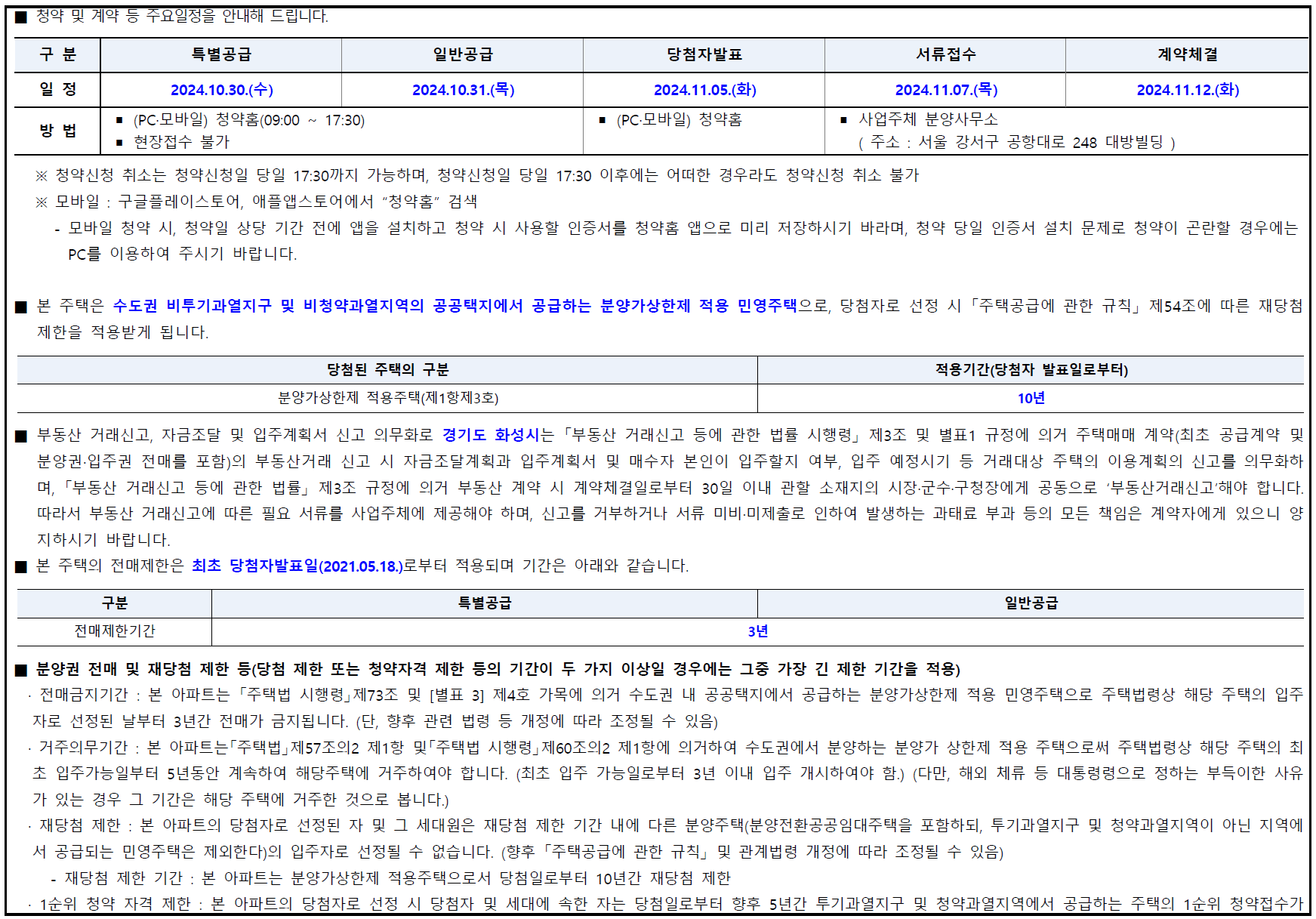 지난번 롯데캐슬 줍줍과는 다르게 거주요건이 '화성시 거주자' 입니다.