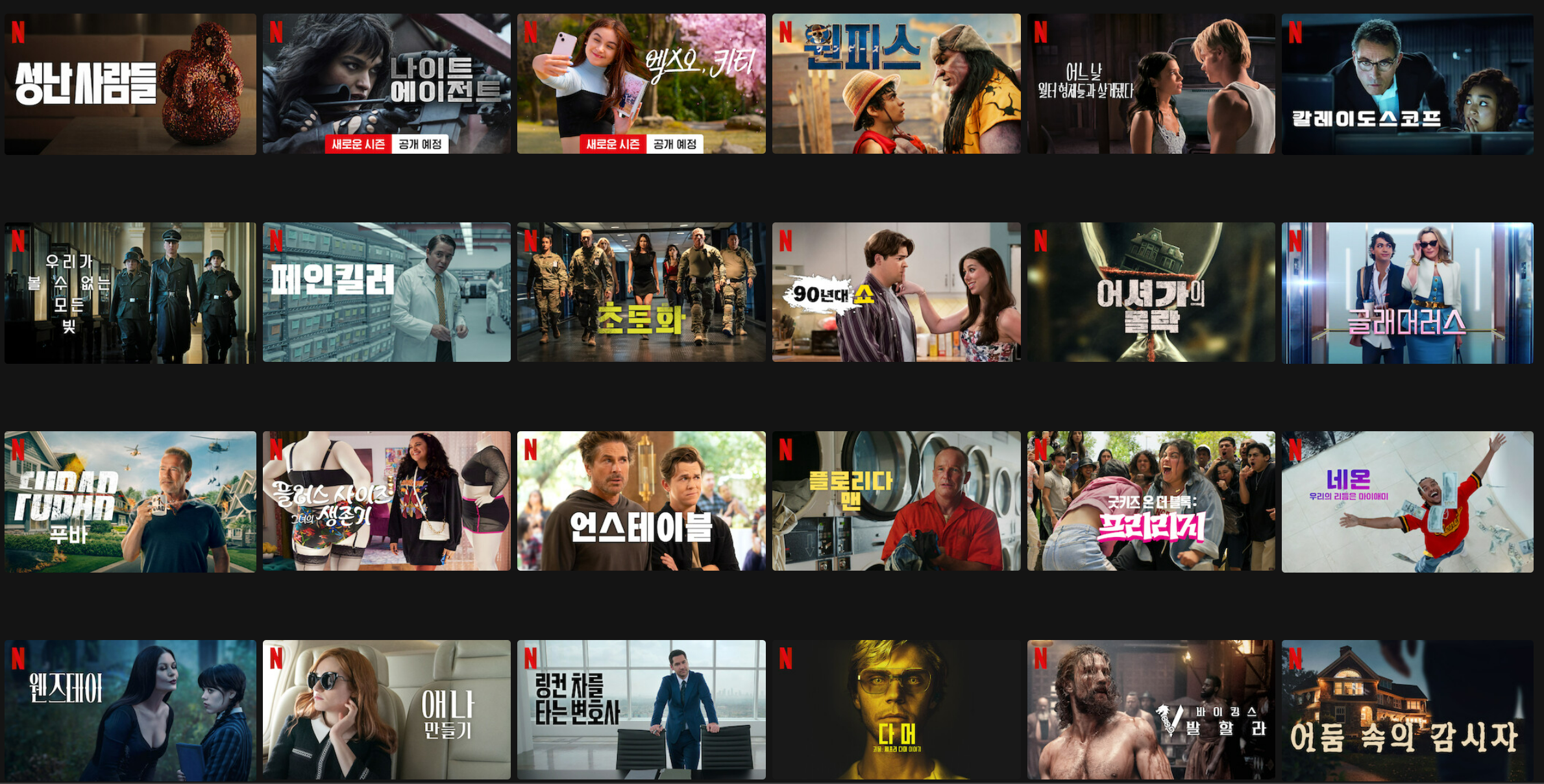 삼체, 괴물: 메넨데즈 형제 이야기, 스파이가 된 남자, 사나운 땅의 사람들, 그리셀다, 아바타: 아앙의 전설, 완전무결한 커플, 리플리: 더 시리즈, 우린 반대야, 어느 남자의 완전한 삶, 혼돈의 세상에서, 선 브라더스, 완벽한 우리집으로, 데카메론, 제이크 폴 vs 마이크 타이슨, 뷰티 인 블랙, 보드킨, 그들이 사라진 마을, 타이어!, 데드 보이 탐정단, 빈스 스테이플스 쇼, 더 넷플릭스 슬램, 체스트넛 vs 고바야시: 푸드파이터들의 대격돌, 샬럿 왕비: 브리저튼 외전, 외교관