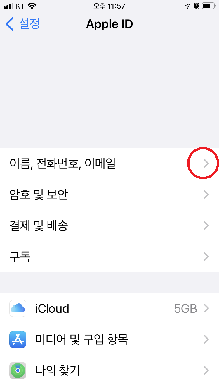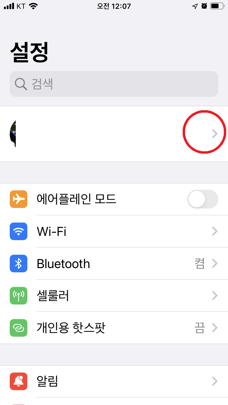 다시 제 아이폰에서 설정에서 제 애플 계정으로 들어갑니다.