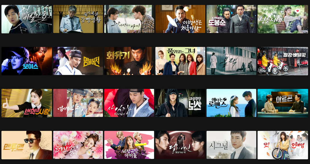 비밀의 숲 / 슬기로운 감빵생활 / 그냥 사랑하는 사이 / 이번생은 처음이라 / 힘 쎈 여자 도봉순 / 청춘시대 /