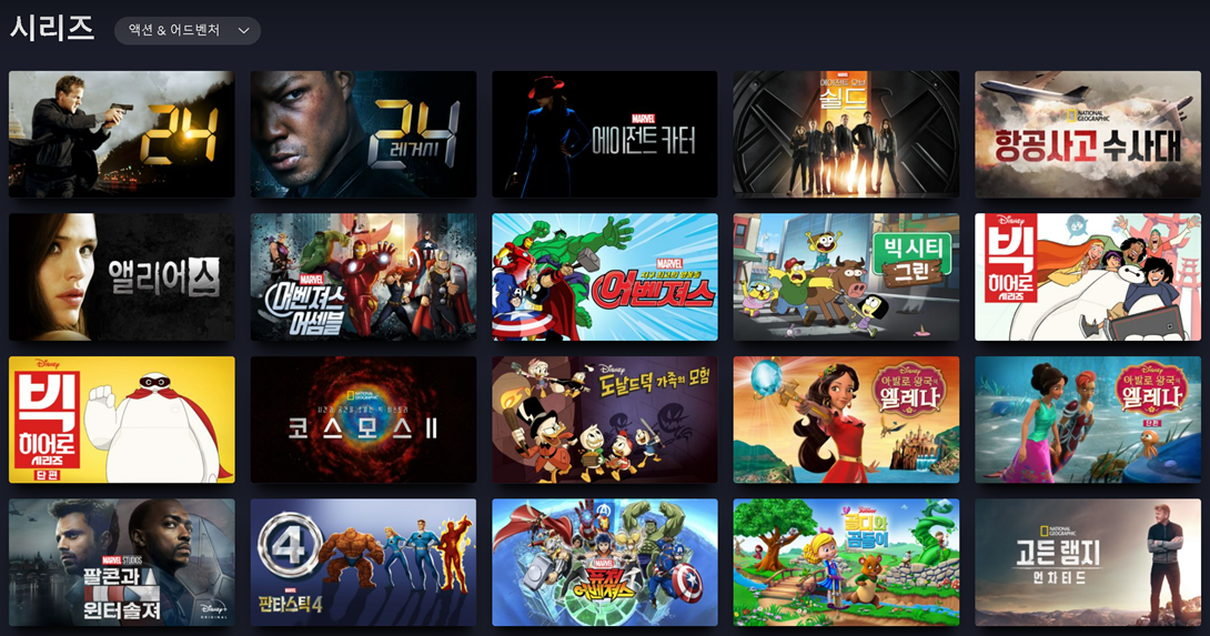 디즈니 플러스 시리즈 중에 액션 & 어드벤쳐 카테고리에 있는 시리즈 목록입니다.