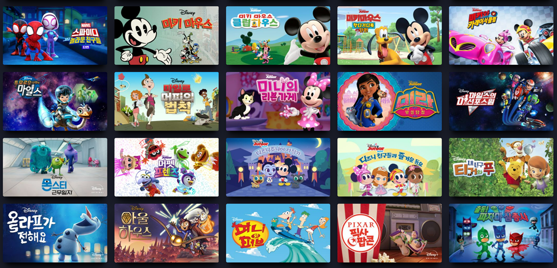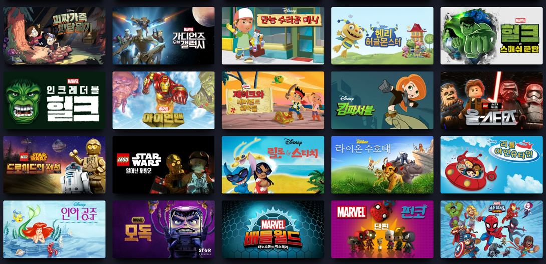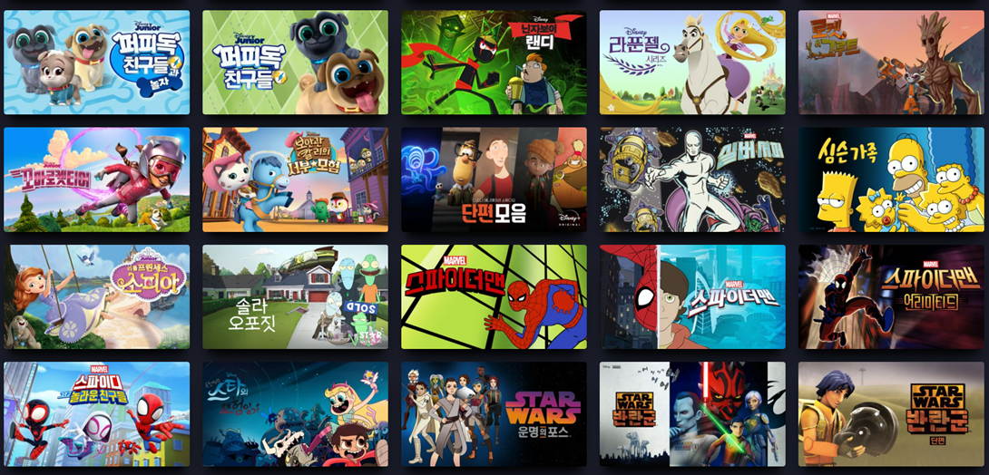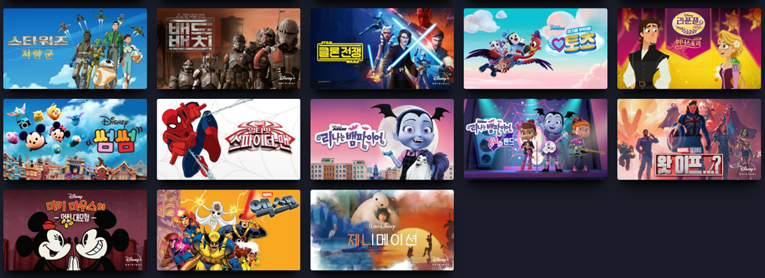 그런데 디즈니 플러스 카테고리는 중복되어 있는 컨텐츠들이 많네요.