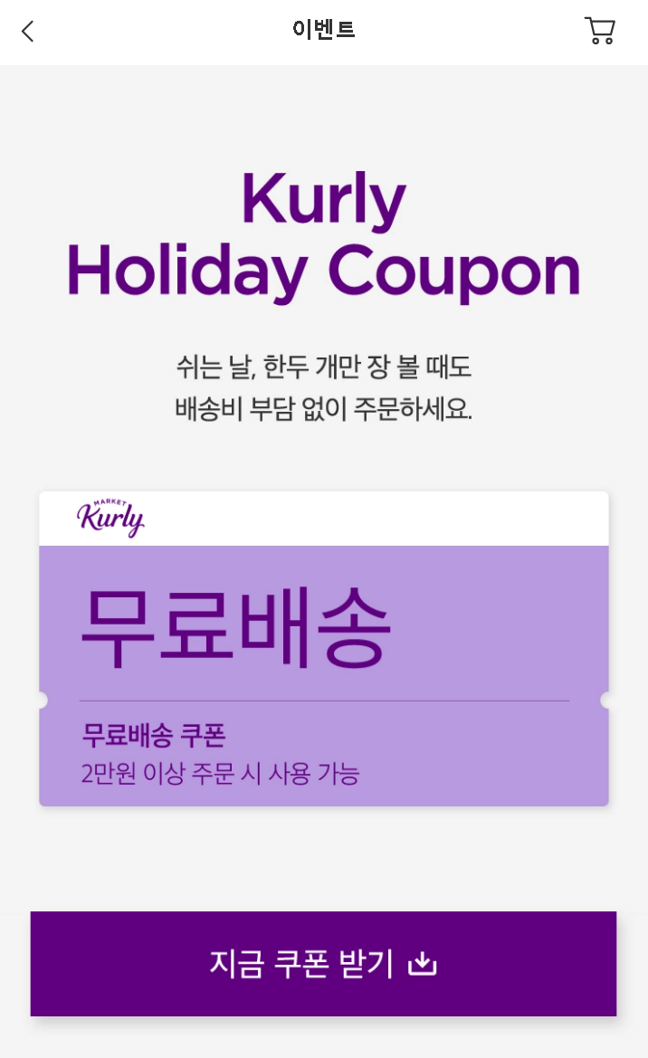 마켓컬리 2만원 이상 무료배송 쿠폰이에요.