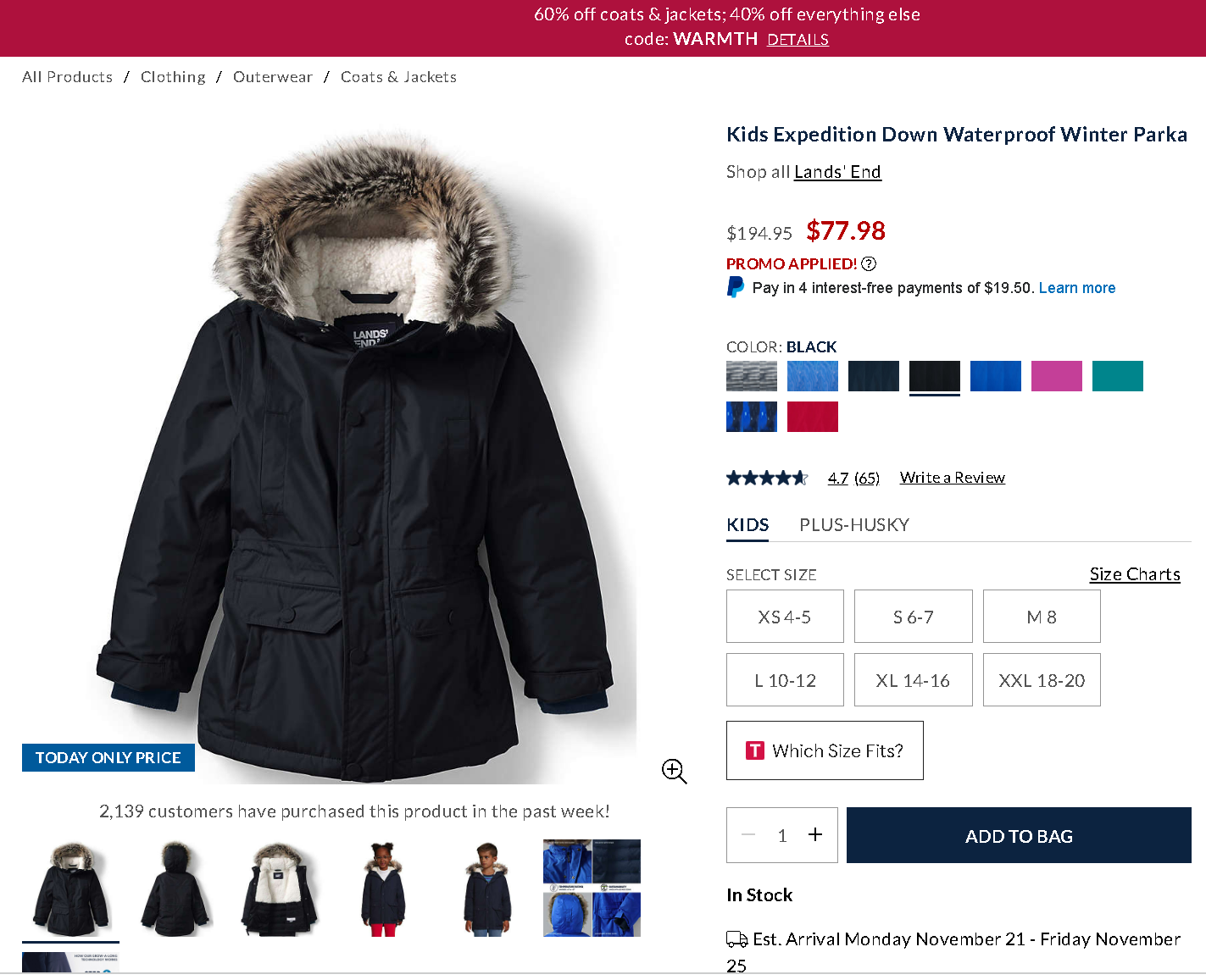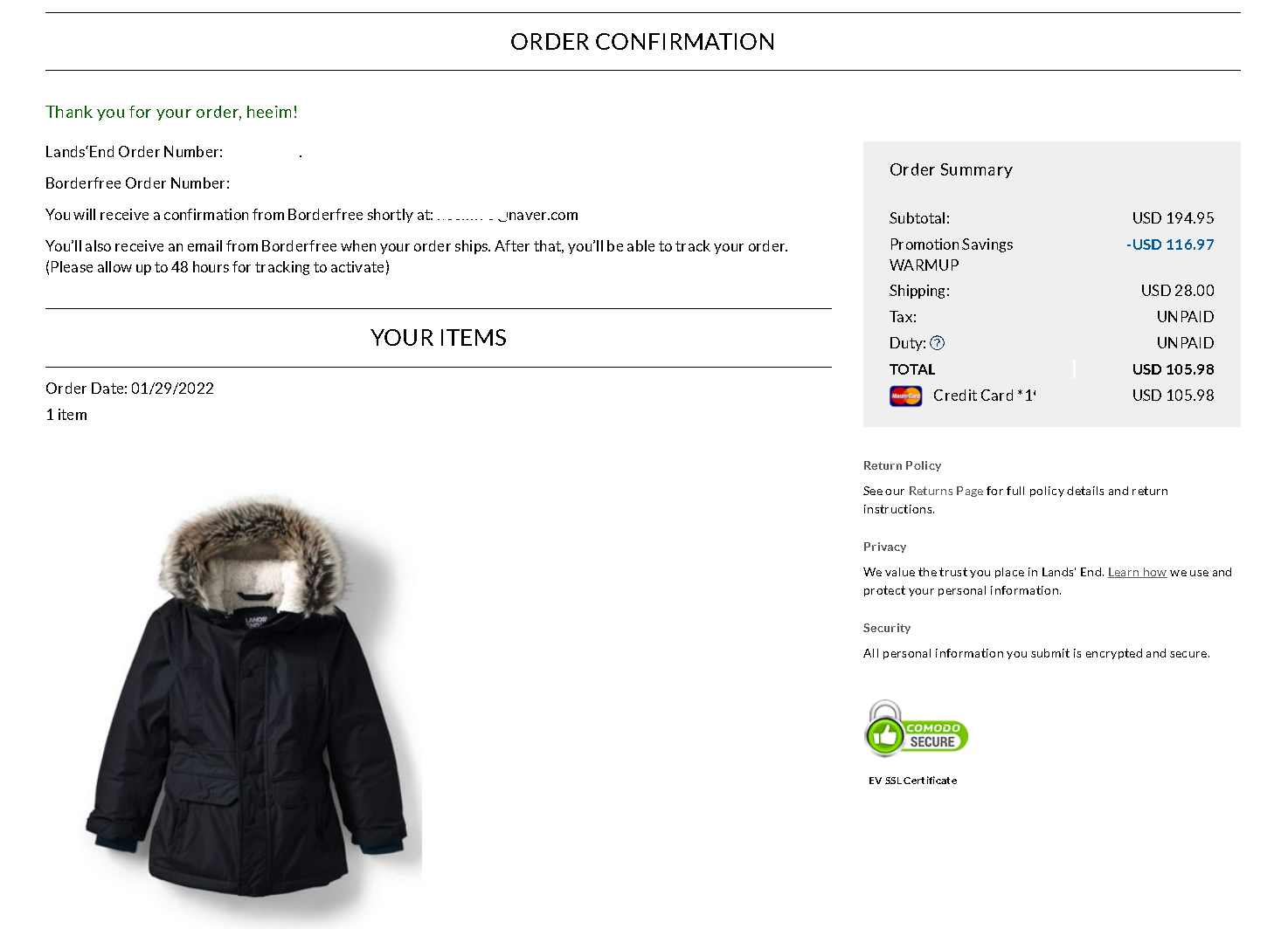 정말 오랜만에 랜즈엔드에서 키즈 익스페이션 파카를 주문했어요.